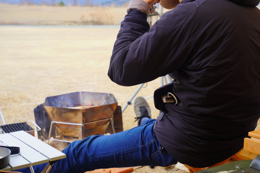 設営している時は身体を動かすので暖かいですがキャンプはじっとしている時間の方が圧倒的に長いです。服装に気をつけないと凍えます。