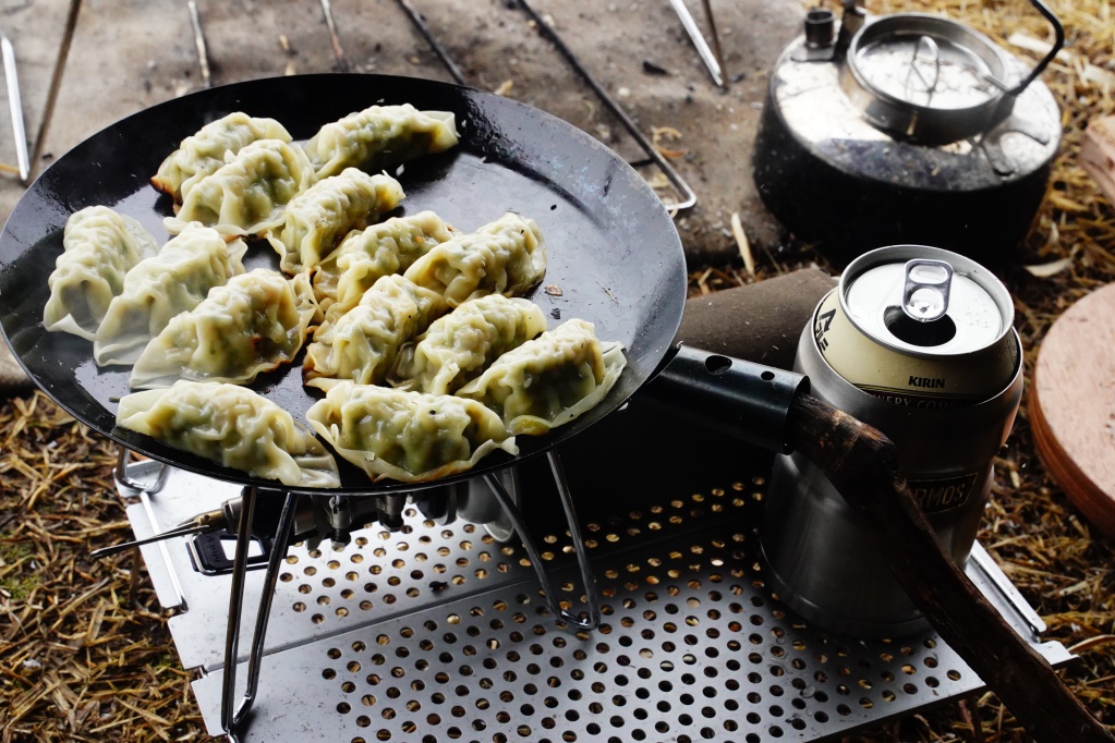 冬は霜や露で外に道具を出していると濡れてしまいます。特に薪はそのまま外に置いている事が多いので翌朝水分を吸収して楽しい朝焚火に少々時間がかかります。