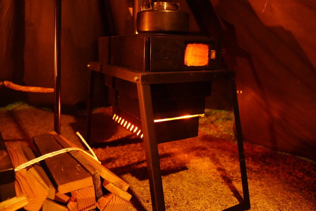 最初「薪ストーブは上級者」というイメージがあったのでトヨトミレインボーを購入しましたが、広いテントに石油ストーブ単体では下半身が寒い。