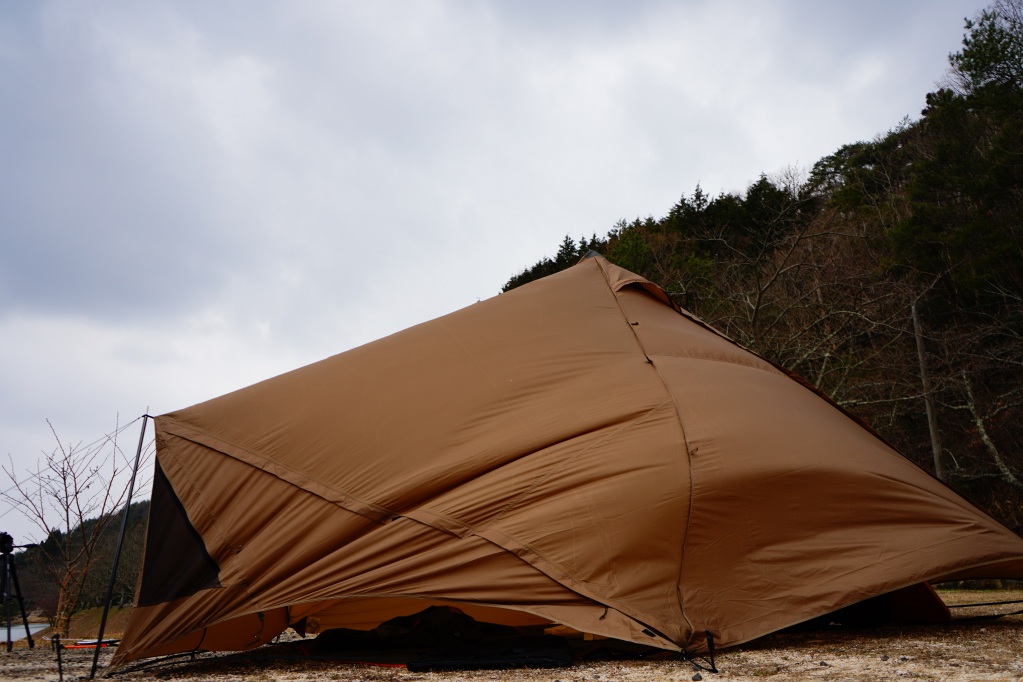 学習せず何度も凍えたのでギギ‐1は春、夏専用にし冬にはスカート付きのサーカスコットンかフロアレスだけど高さ調節で疑似スカートができる軍幕を使うようになりました。