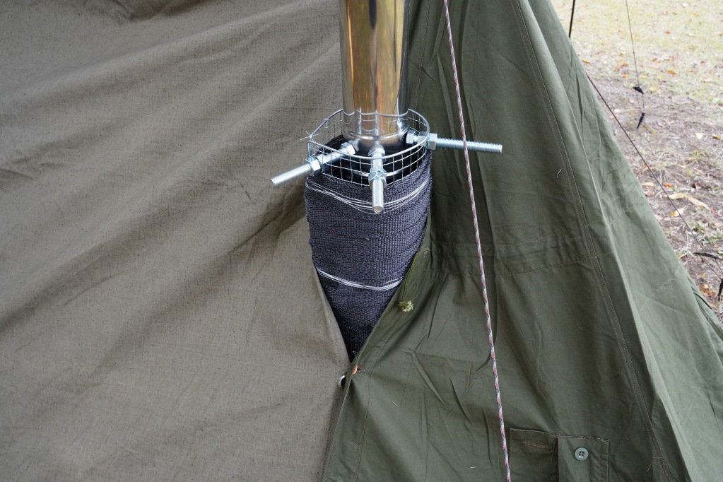 以前使っていたホンマ製作所のAF-60は煙突の径が太くて、煙突ガードも装着すると幕に大きな隙間が出来てしまいます。