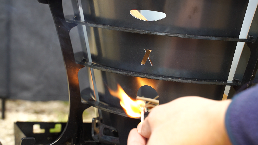 風を防ぎ、熱を一方向のみに逃がす事で燃焼効率が格段に良くなります。焚き付けから薪に火が点くまで速く、一度火が点けばあとは適当に薪を入れるだけ。