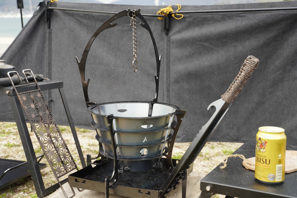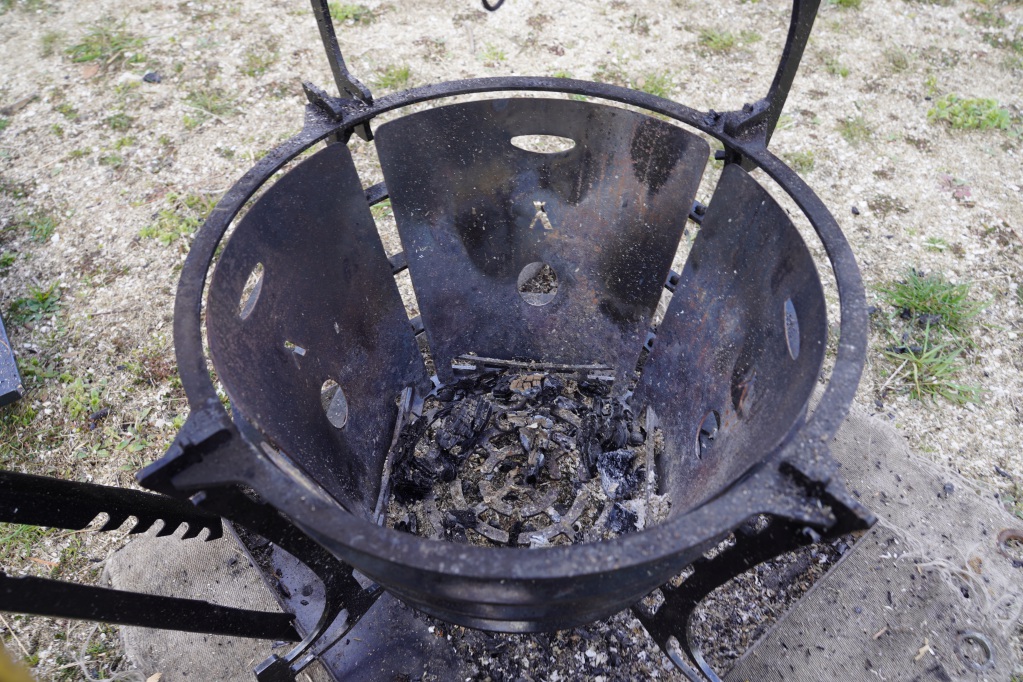 今までは隙間から落っこちてた炭がFUBOUがあるおかげで目皿に堆積していきます。熾火調理ができるだけでなく風で燃え落ちた薪が飛ぶ心配が減るので安心して焚火ができます。