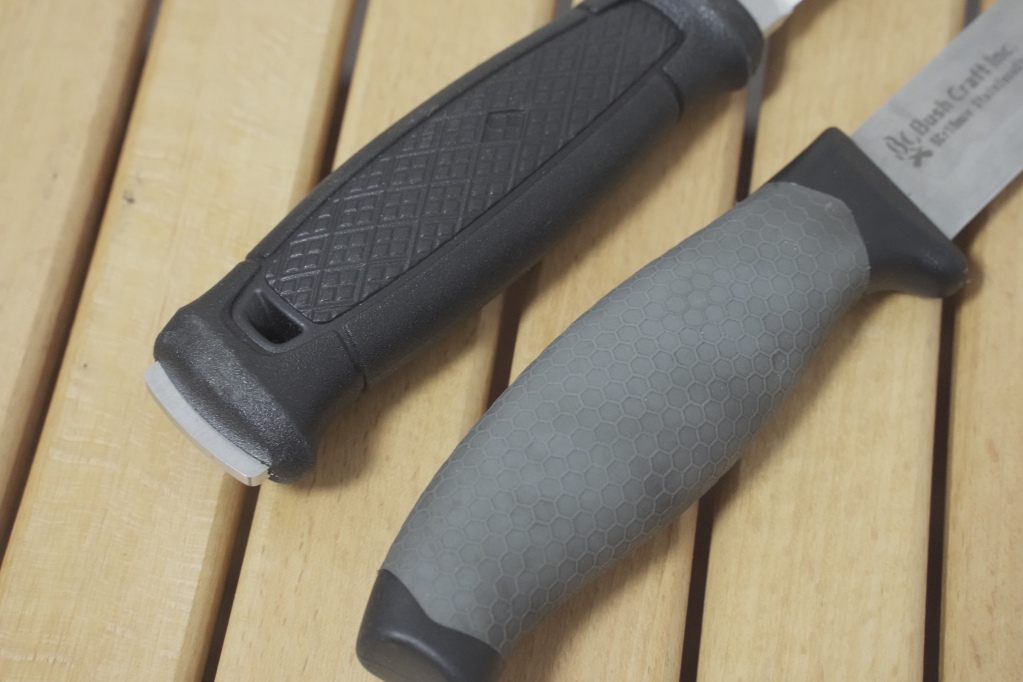 そこから+8,000円するガーバーグとの違いは「バトニングのしやすさ」と「長く使い続けられる安心感」。ネットで探せばさらに安くフルタングで同じ刃の形状のナイフが売られていますが、モーラナイフという安心感はモーラナイフでしか手に入りません。